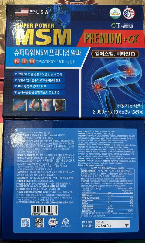 MSM Премиум + Витамин D — мощная поддержка суставов, связок и костей Это один из самых сильных комплексов для здоровья суставов, которые сейчас продаются в Корее. Здесь шикарная дозировка MSM — 1500 мг на 1 таблетку. Плюс добавлен витамин D для лучшего усвоения кальция и защиты костей. По составу и по действию — это топовый вариант, особенно если есть боли, скованность, щелчки или возрастные изменения.